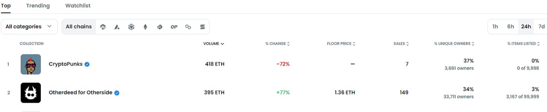 据OpenSea数据显示,Bored Ape Yacht Club(BAYC)系列NFT近24小时交易额为325ETH,增幅达351%,24小时交易额排名位列OpenSea第3。
