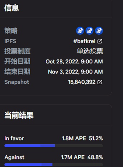 Apecoin DAO 本周对一项重要的 Ape 改进提案AIP-134进行投票,如果该提案获得通过,将会创建一个质押漏洞赏金计划,并将Ape 质押奖励推迟到 12 月 7 日。AIP-134由Apecoin DAO特别委员会成员 Maaria Bajwa 提交,目前反对票占比达到了48.8%,赞成票已51.2%的比例微弱领先,该投票将于11月3日结束。Maaria Bajwa坦言,如果该提案通过质押奖励将不会在11月14日开始累积,继而导致某些质押者利益受损,此前ApeCoin DAO 批准了价值1.75 亿美元APE在未来三年内通过质押进行分配的提案(AIP-22),占到APE总供应量的 17.5%。