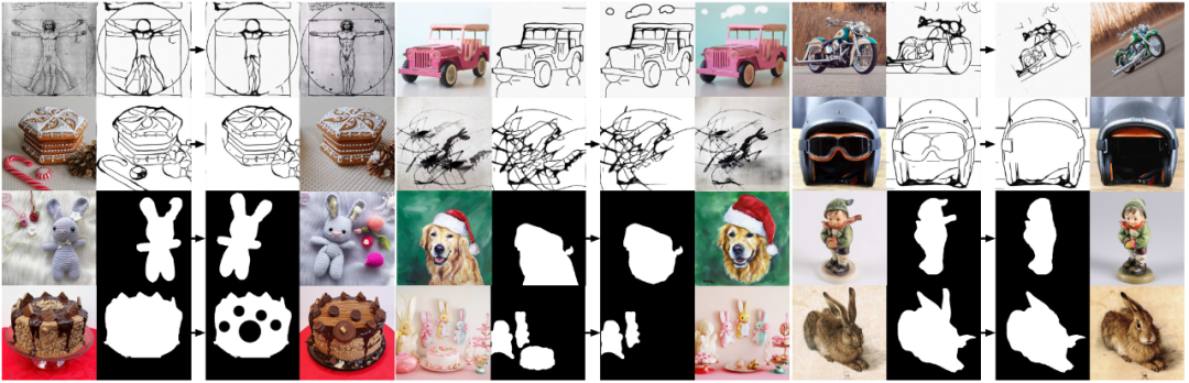 接着尝试一张 3D 卡通原图、一张素描风格图。从结果看得出来,两种风格之间的切换游刃有余。