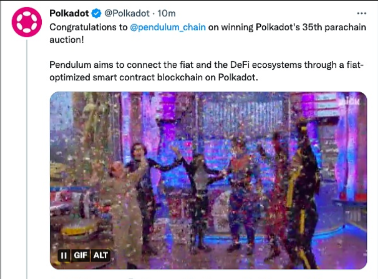 pendulum_chain赢得Polkadot第 35 次平行链拍卖,Pendulum旨在通过 Polkadot 上的法币优化智能合约区块链连接法币和 DeFi 生态系统。