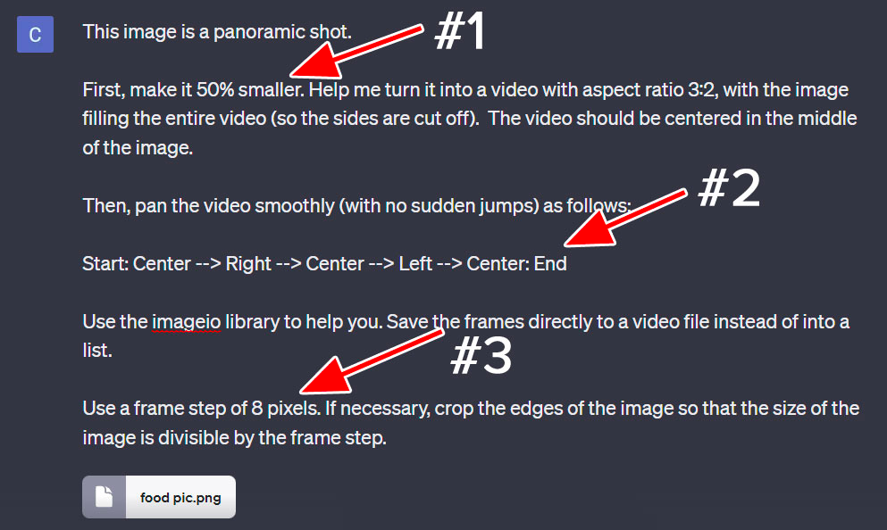 想让图像变小,就告诉 GPT 将其大小调整为 50%;想让视频从下往上平移,将提示改为「 Start: Bottom → Center → Top: End」;想让视频的速度提高 2 倍,将帧的步长从 8 像素改为 16 像素。