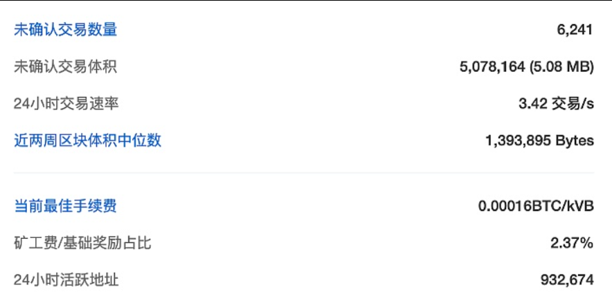 据BTC.com数据显示,目前比特币全网未确认交易数量为6241笔,全网算力为270.84EH/s,24小时交易速率为3.42交易/s,目前全网难度为36.84T,预测下次难度下降0.4%至36.69T,距离调整还剩3天5小时。