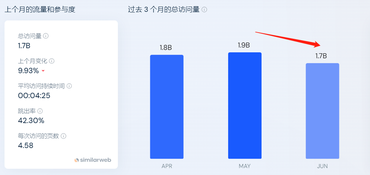 图|ChatGPT 6月流量与参与度(来源:SimilarWeb)
