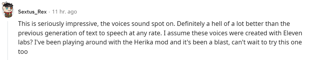 试过之后网友表示非常好,语音恰到好处,一点不违和,沉浸感爆棚。