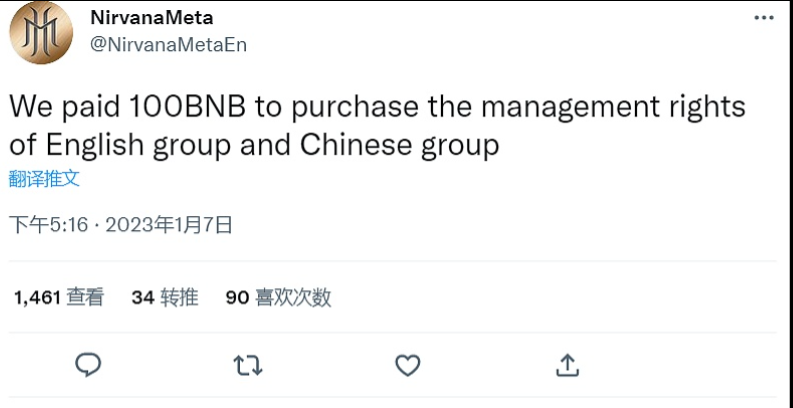 据官方推特消息,NirvanaMeta MNU雇请的市值团队和电报群运营团队盗窃子币NU的资金,并勒索马来西亚总部赎回中文社区和英文社区管理权, 马来西亚总部支付了赎金100BNB接管社区管理权。同时宣布重新部署游戏子币NewNU,映射原NU代币,1月9日,pancakeswap重新添加NewNU流动性。