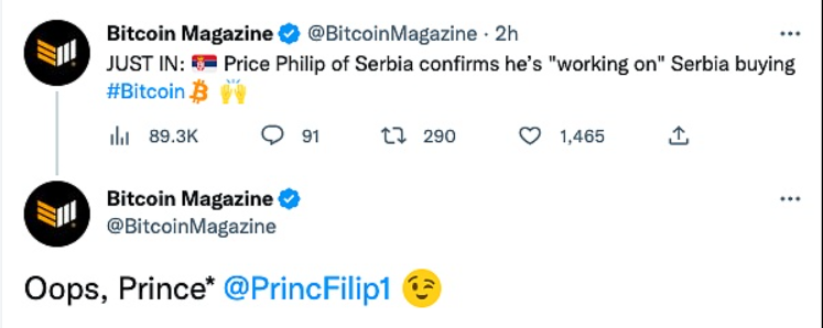 据Bitcoin Magazine在社交媒体上称,塞尔维亚和南斯拉夫的菲利普亲王证实他正在“努力”让塞尔维亚购买比特币。 2022年8月30日,塞尔维亚的菲利普王子表示,最终我可能会在比特币中工作。