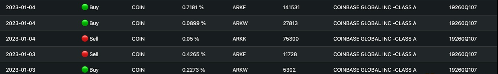数据显示,1月1日至今,ARK方舟基金累计增持86112股Coinbase股票(COIN),按当前价计算,价值约286万美元。截止周五收盘,COIN收盘报33.26美元。