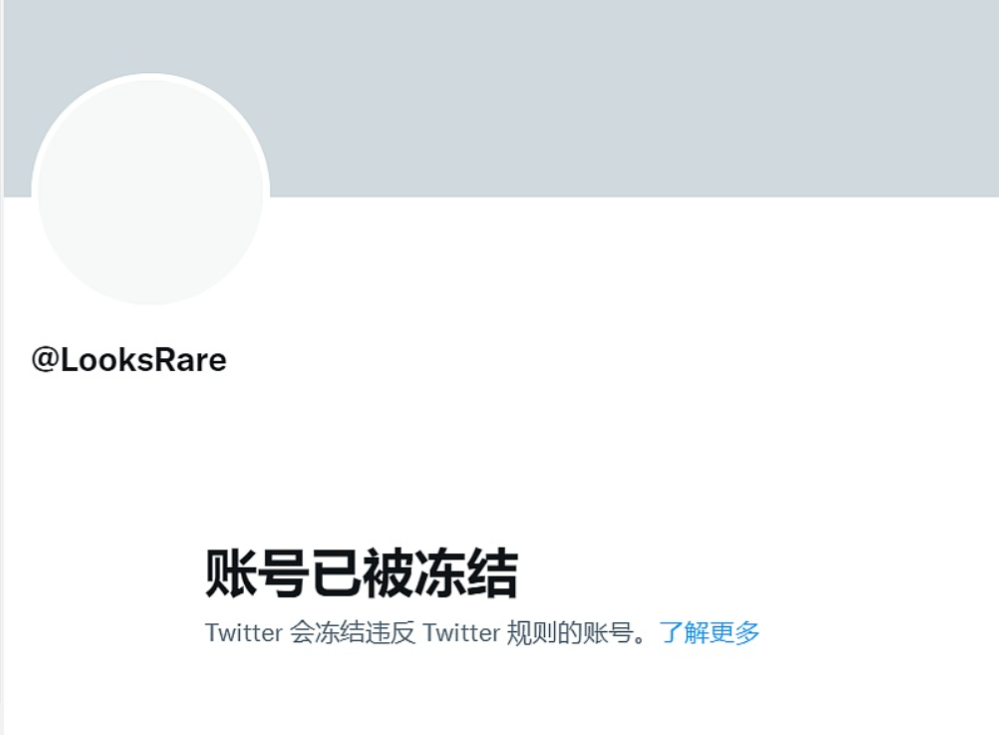 1月10日消息,据推特界面显示,NFT交易市场LooksRare推特账户显示“已停用”,目前尚不清楚被封禁原因。 此前Solana生态项目DeGods、y00ts、Solana生态钱包Phantom推特账户也被封禁,后又恢复正常使用。