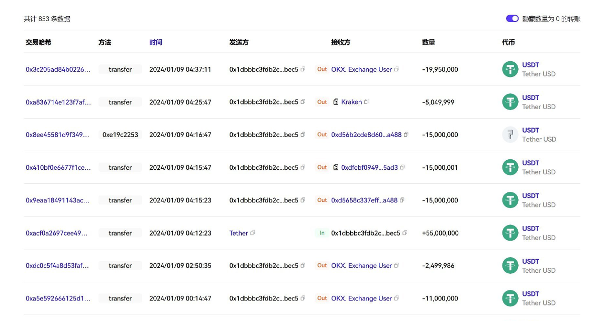 此前报道,去年10月20日以来该地址已向Kraken、Coinbase、OKX等交易所累计转入超20亿USDT。