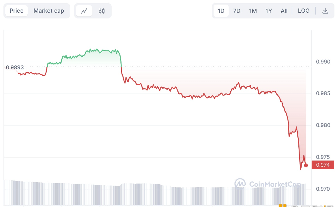 1月18日财经报道,根据MetaTrust Alert监测,稳定币TUSD出现脱锚,当前交易价格为0.974美元,脱锚2.6%。同时,TUSD在Curve池crvUSD/TUSD中份额达到91%,在Curve 3池TUSD/FRAX/USDC中份额达到92.2%。