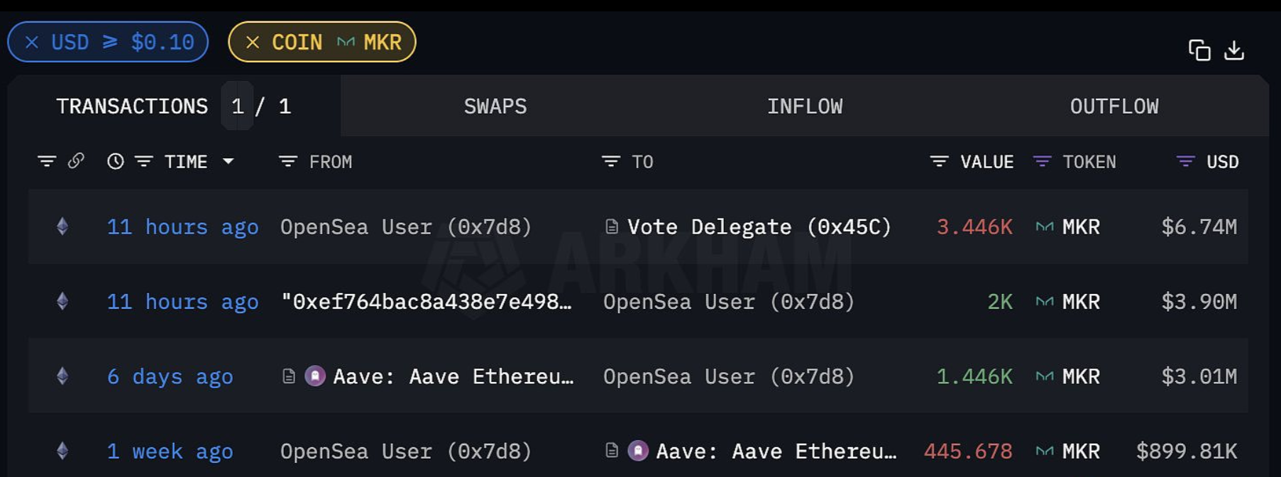 1月20日财经报道,据链上分析师@ai_9684xtpa监测,10小时前,MKR巨鲸质押3446枚MKR (价值674万美元)用于社区投票,该地址早在2020年就开始定投,目前共持有7190枚MKR,成本仅为1091美元,已浮盈639万美元。