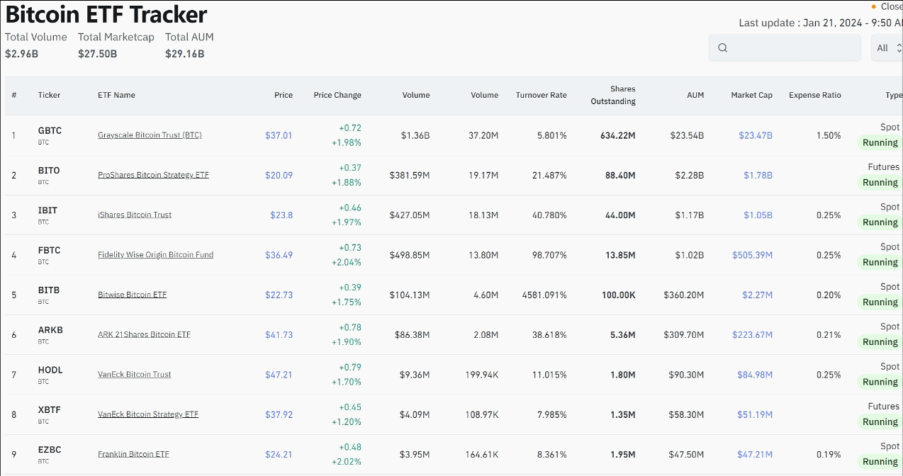 1月21日消息,Coinglass数据显示,比特币ETF总资产管理规模( AUM)达291.6亿美元。 其中,资产管理规模排名前三的比特币ETF分别为: GBTC资产管理规模达235.4亿美元; BITO资产管理规模达22.8亿美元; IBIT资产管理规模达11.7亿美元。