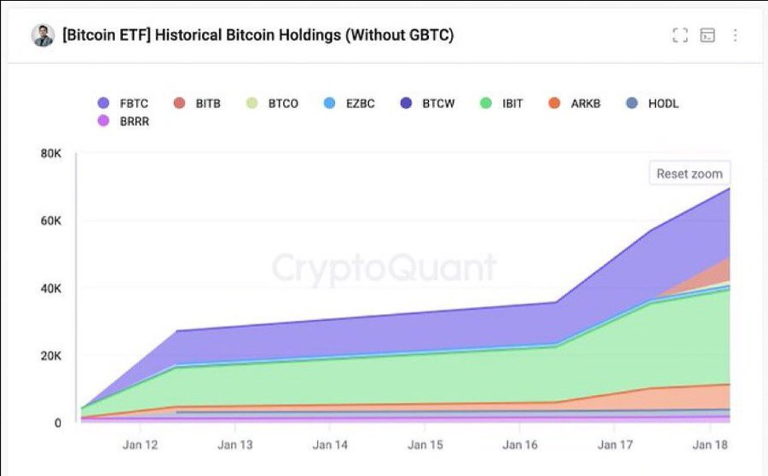 1月21日消息,9个比特币现货ETF(不包括GBTC)平均每个交易日共增持约13000枚比特币。