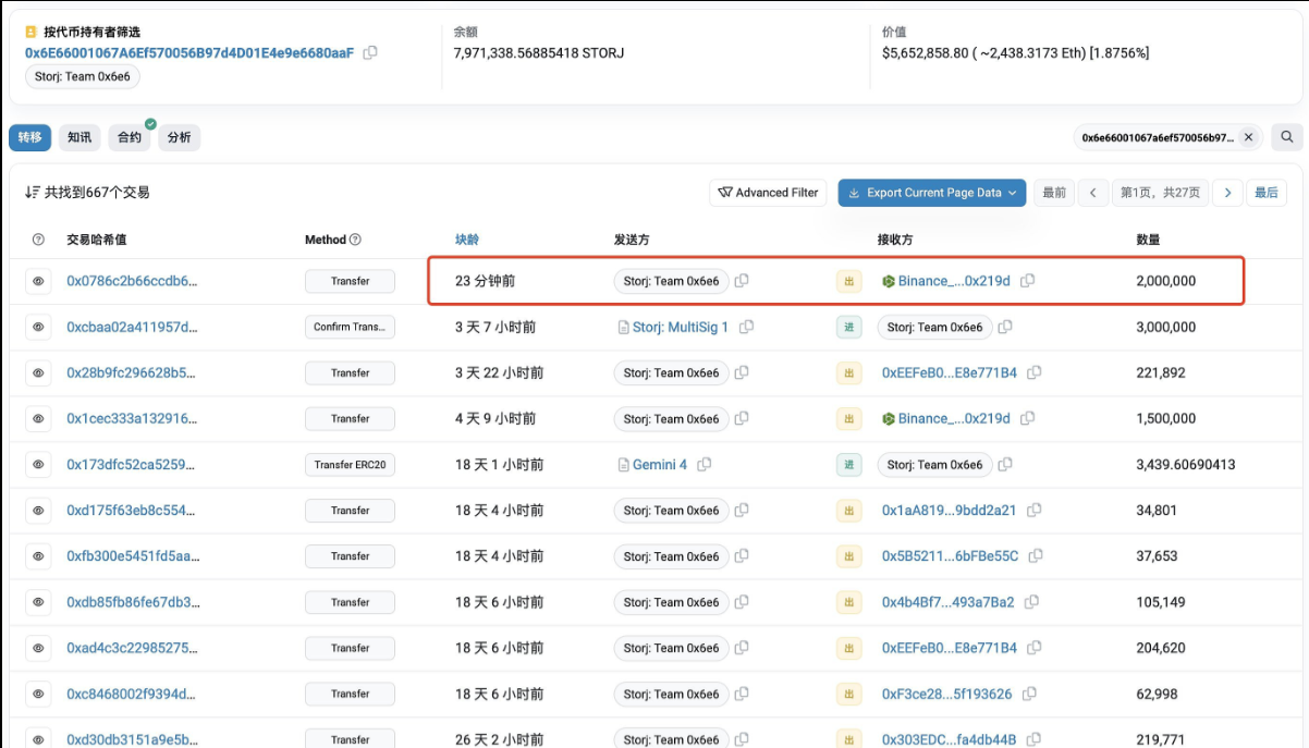 1月30日财经报道,链上分析师余烬监测数据显示,20分钟前,STORJ团队地址将200万枚STORJ(141万美元)转入做市商GSR的Binance存款地址。STORJ从昨天以来上涨了14%。