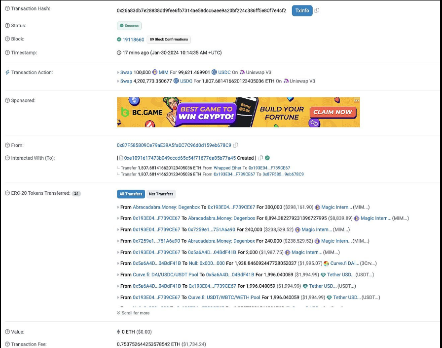 1月30日财经报道,BlockSec在社交媒体表示,系统检测到针对DeFi协议@MIM_Spell的攻击,损失高达数百万美元。请尽快采取行动。 另据派盾监测,损失金额达649万美元。