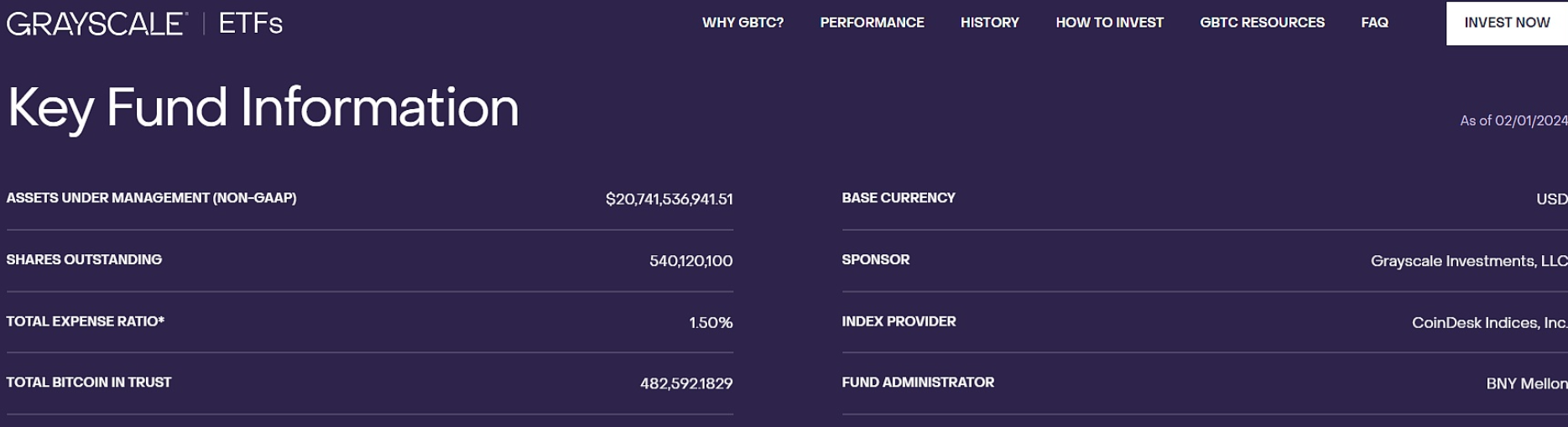 2月2日财经报道,灰度官方发布每日持仓更新显示,截至2024年2月1日,其持有的比特币数量为482,592.1829枚,较1月31日的487,025.986枚比特币减少约4433 BTC。此外,截至2月1日GBTC的资产管理规模(非公认会计原则)约为207.41亿美元,流通股降至540,120,100份,每股持有BTC小幅下降至0.00089349枚。