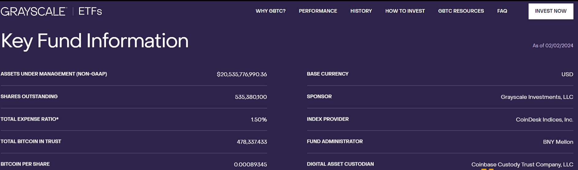 2月3日财经报道,灰度官方发布每日持仓更新显示,截至2024年2月2日,其持有的比特币数量为478,337.433枚,较2月1日的482,592.1829枚比特币减少约4,254 BTC。此外,截至2月2日GBTC的资产管理规模(非公认会计原则)约为205.35亿美元,流通股降至535,380,100份,每股持有BTC持续下降至0.00089345枚。