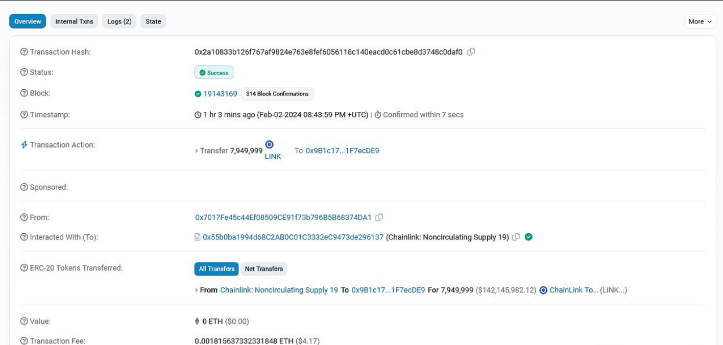 2月3日财经报道,Spreek监测数据显示,过去90分钟内,近3亿美元的LINK代币被转移至币安。 行情数据显示,LINK现报17.81美元。24小时涨幅4.18%。