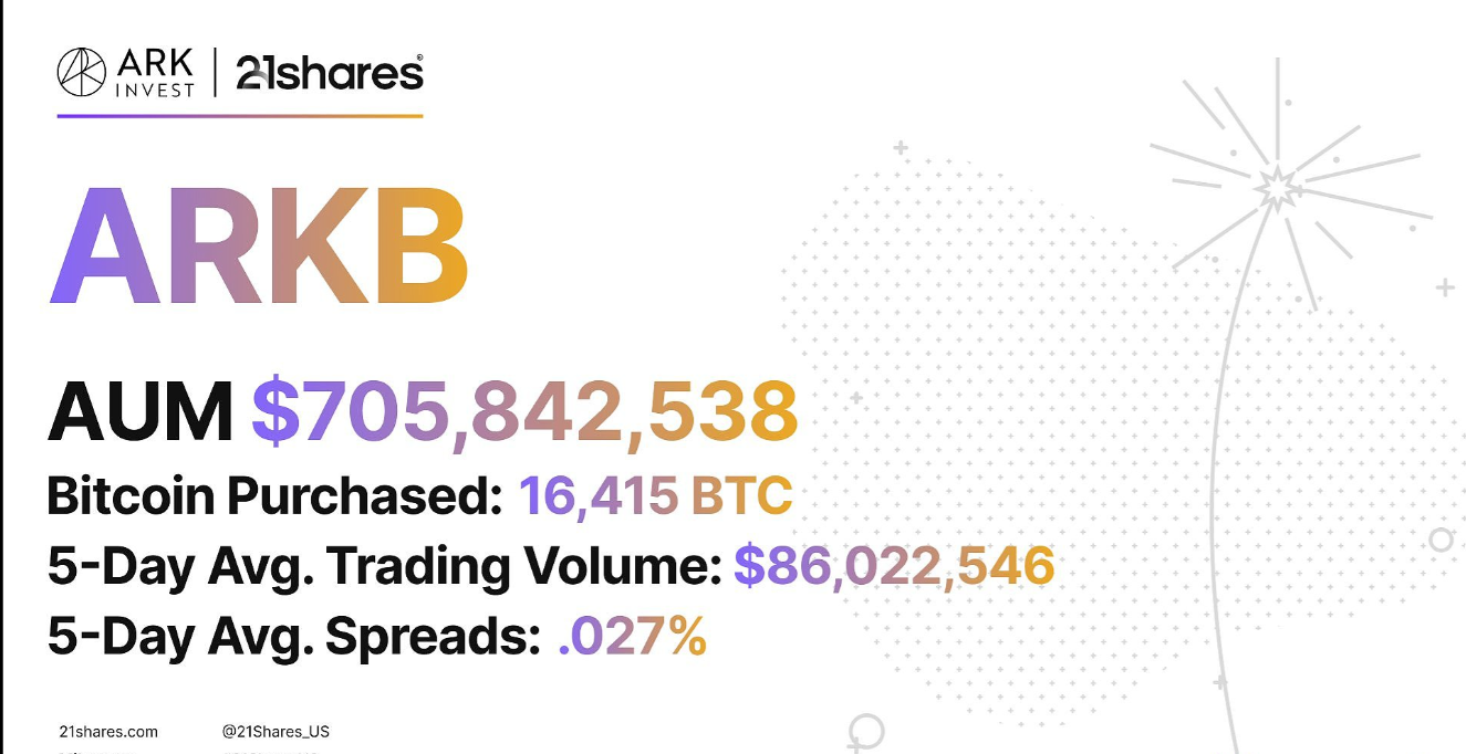 2月3日财经报道,21Shares最新数据显示,ARK 21Shares现货比特币ETF(ARKB)今日产生了22,574,921美元的净新资产,总资产管理规模为705,842,538美元,当前持有16,415枚比特币,五日移动平均交易额超过8602万美元。
