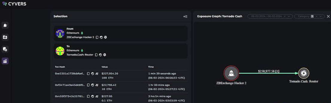 2月6日财经报道,据Cyvers Alerts监测,2022年8月,交易所ZBexchange因涉嫌私钥泄露而遭到黑客攻击。今天,黑客通过地址0x26446向Tornado Cash存入25万美元。该黑客仍在上述同一地址持有2114枚ETH(价值480万美元)。
