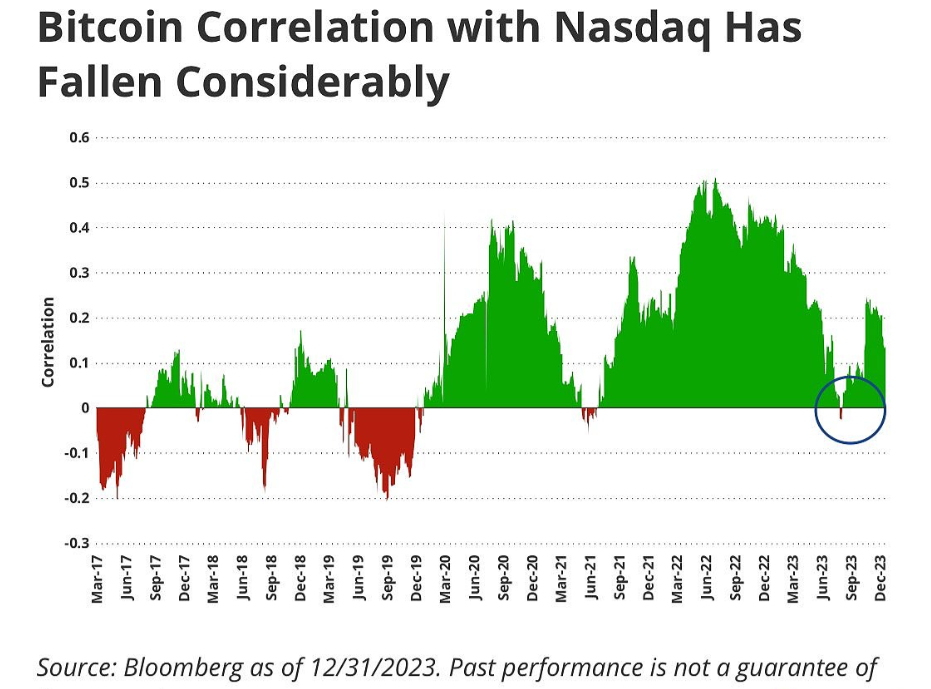 2月12日财经报道,VanEck顾问Gabor Gurbacs在X平台发文称,比特币与纳斯达克指数的相关性大幅下降。比特币的交易不像科技股,越来越多的人将其作为避险工具。比特币在12年中有8年是表现最好的资产。