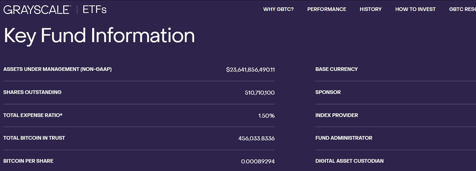 2月17日财经报道,灰度官方更新现货比特币ETF持仓数据:截至2月16日,GBTC持有456,033.8336枚BTC,较前一日减少约3394枚。此外,GBTC的资产管理规模(非公认会计原则)为23,641,856,490.11美元,流通份额减少到510,710,100份,每份持仓约0.00089294 BTC。