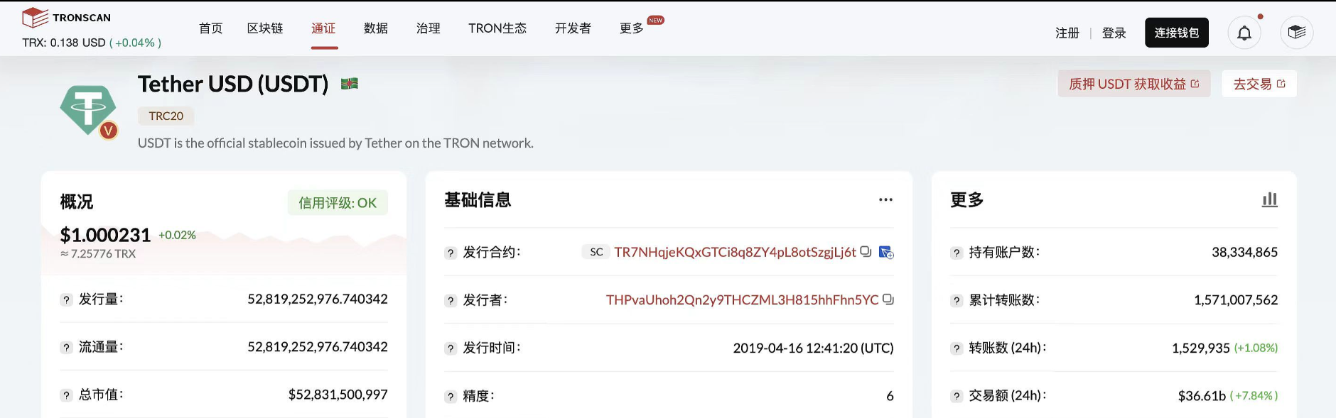 据官方消息,TRC20-USDT发行量突破528亿枚,创历史新高。截至目前,TRC20-USDT持有账户数已达3830万,累计转账数超15.7亿笔。 TRC20-USDT是Tether公司基于波场TRON网络发行的锚定美元的稳定币,转账速度快、低手续费的特点已经吸引了大批用户,且已经有Binance、HTX、OKX、Bitfinex、MEXC、KuCoin、Gate.io、Poloniex等多家交易所的支持。基于TRC20版本的USDT将大幅提升波场TRON现有的去中心化应用生态系统,带来更高的整体价值存储和更强的去中心化交易所流动性,并为企业级合作伙伴与机构投资者提供更便捷的区块链入口。