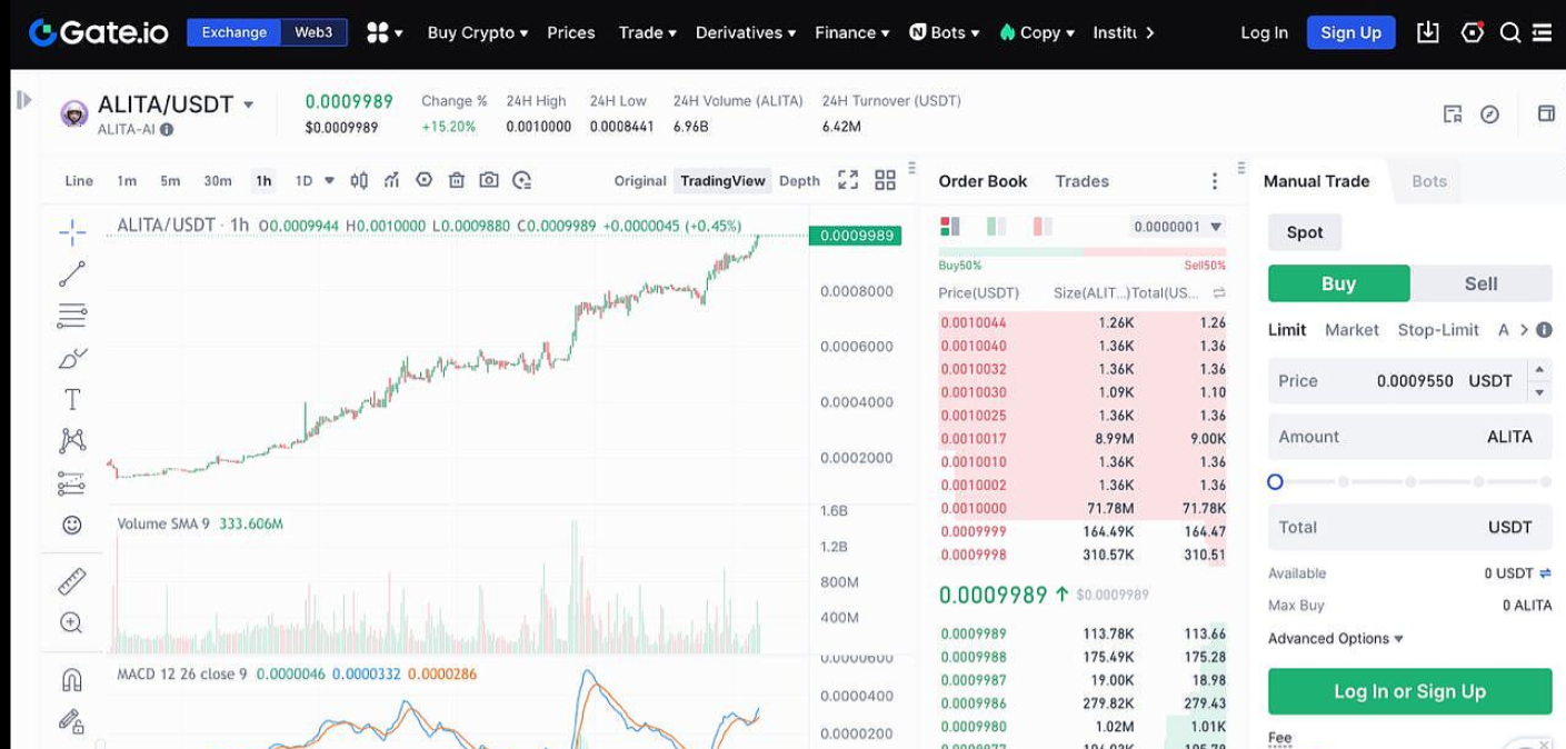 3月18日消息,据Gate行情数据显示,ALITA短时突破0.001美元,续创历史新高,24h涨幅达到15.20%成功去零,现报0.0009989美元,7日内涨幅达90.84%,30日内涨幅453.67%,并连续多个交易日登陆Gate涨幅榜。行情波动较大,请做好风险控制。