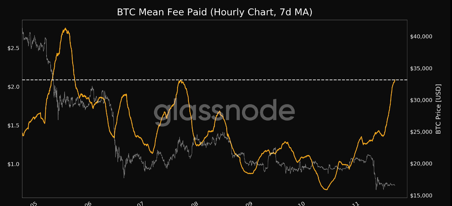 据Glassnode数据显示,BTC平均支付费用在过去1小时 (7d MA) 达到2.09美元,创近5个月以来新高。