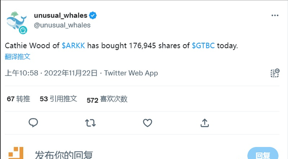 11月22日消息,据unusual_whales发推称,Cathie Wood旗下方舟基金(Ark Invest)购买了176945股GBTC份额,购买金额约145万美元,当前灰度GBTC负溢价率42.62%,较昨日45.2%的历史新低有所回升。