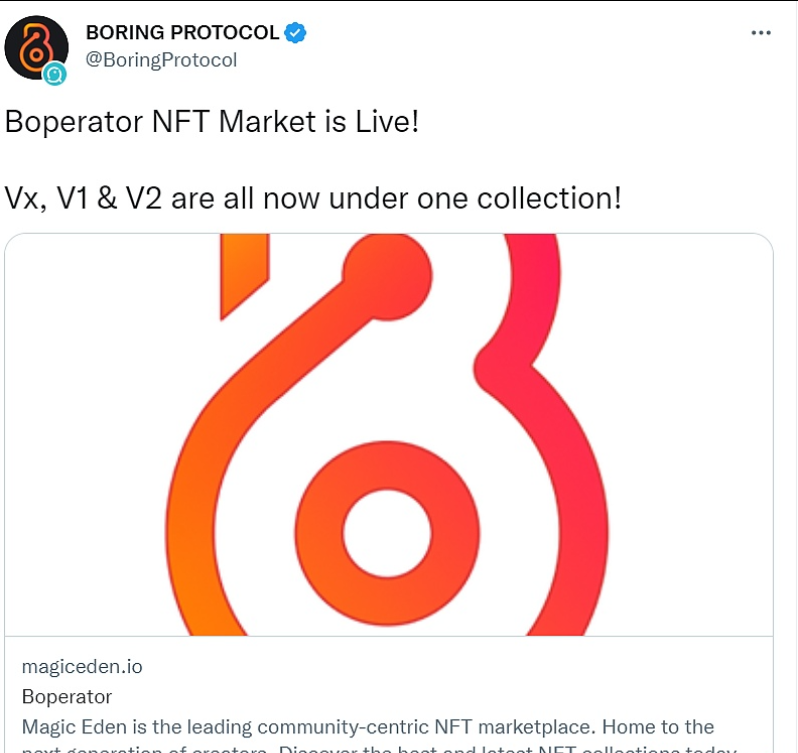 11月22日消息,基于Solana的去中心化VPN网络Boring Protocol发推称,BoperatorNFT已上线Solana上NFT市场Magic Eden,Boperator VX、V1和V2均可在其上进行交易。 此类NFT用作软件许可证,允许协议节点运营商将节点带入网络,每个节点都需要一个Boperator NFT保存在钱包中,系统定期验证所有者是否有操作其节点所需的NFT数量,并在必要时将其执行最差的节点从网络中删除。