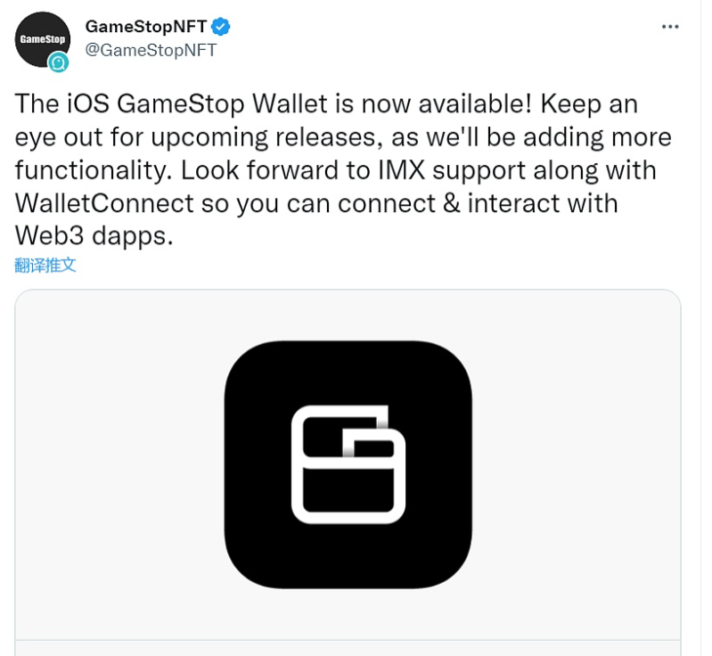 11月22日消息,GameStop旗下NFT市场GameStop NFT在推特上宣布,IOS版本的加密钱包GameStop Wallet已上线。 此前5月份消息,GameStop推出浏览器插件钱包GameStop Wallet,该钱包可用于储存、发送和接收加密货币和NFT,并支持GameStop NFT市场。