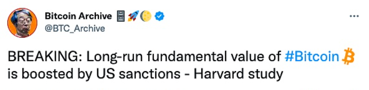 哈佛大学研究报告称,美国的制裁提升了比特币的长期基本价值。