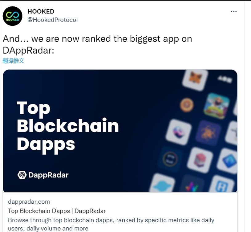 11月25日消息,DAppRadar数据显示,Hooked成为日活用户量(UAW)排名第一的区块链DApp,达27.36万个,24H涨幅4.62%。