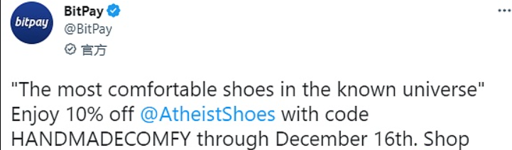 据加密货币支付服务商BitPay发推称,SHIB现已支持购买Atheist品牌鞋子,并在限定时间内享受10%折扣优惠。此外,Web服务提供商HOSTKEY还宣布通过BitPay接受SHIB等加密货币,目前在特定服务器上为新订单和加密货币支付提供10%的折扣。