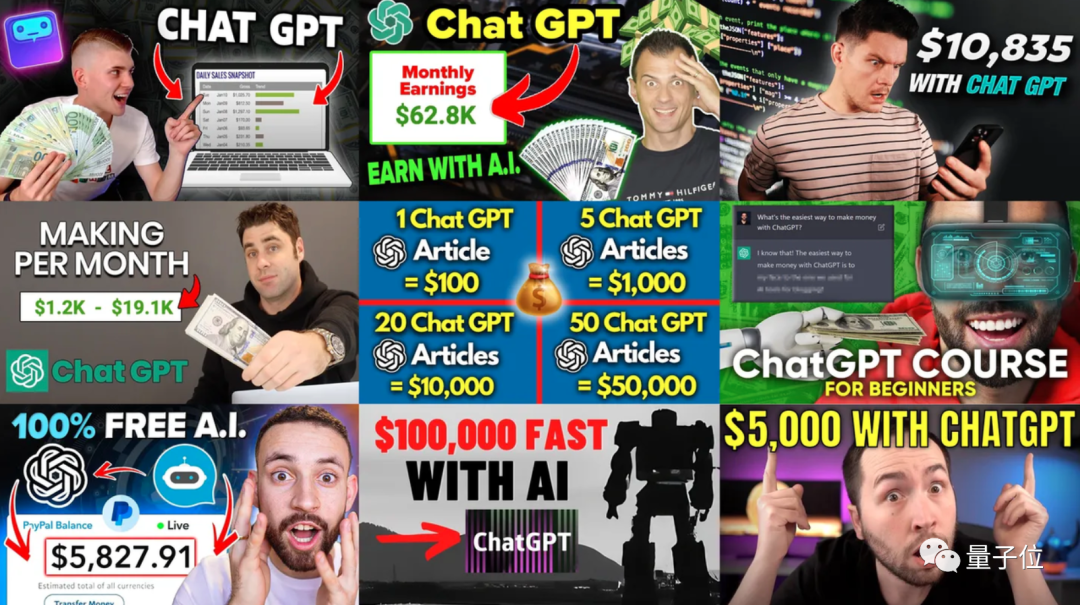 在视频网站中搜索“ChatGPT赚钱”,刷刷刷映入眼帘的全是各种免费教程,收益一个比一个大,点击率一个比一个高。