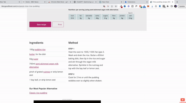 例如油管博主Liam James Kay,就以一个食谱转换插件为例,演示了一遍使用ChatGPT生成代码的方式。