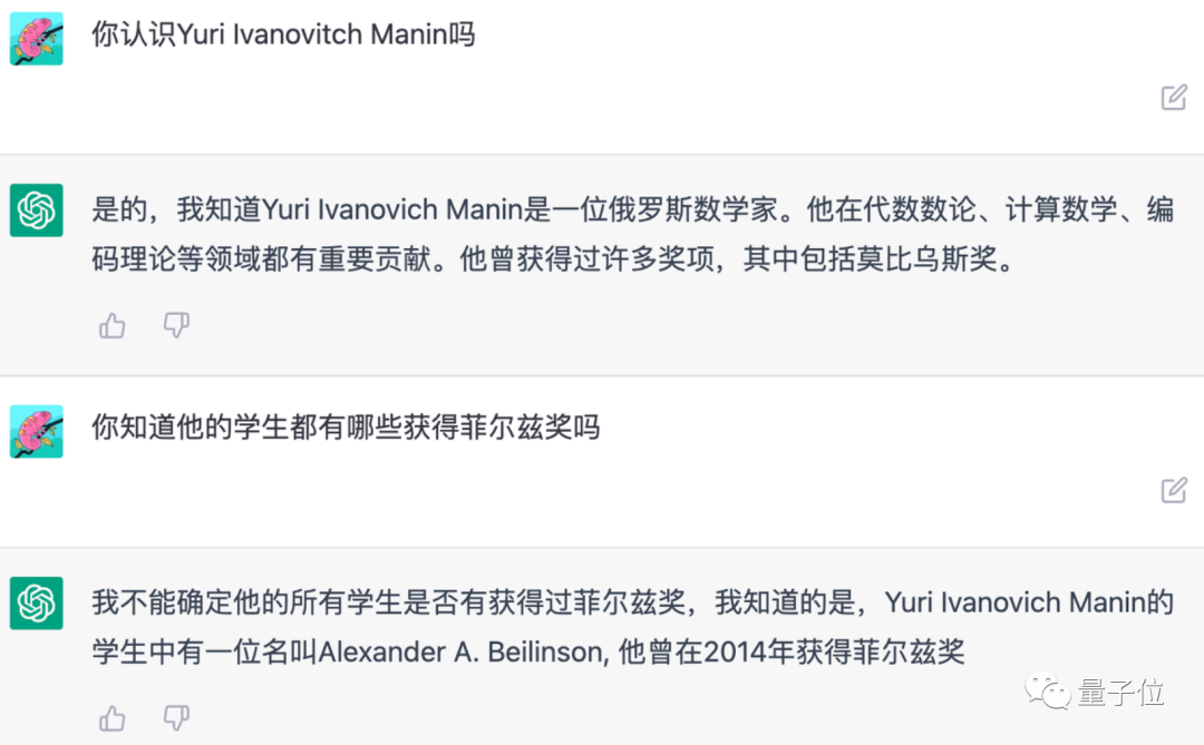 量子位也尝试用ChatGPT撰写过文章,以一篇关于数学家尤里·曼宁的文章为例。