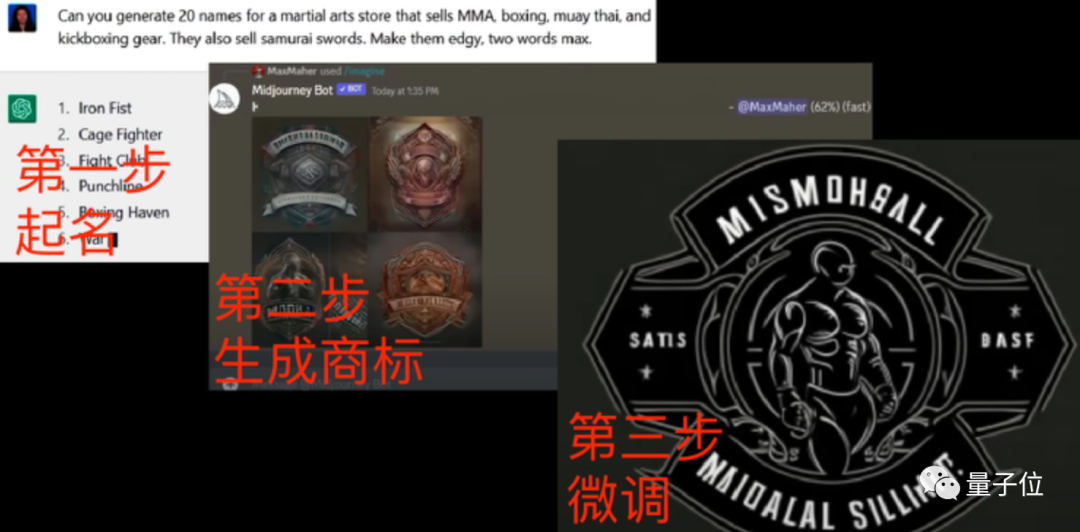 例如教你先用ChatGPT给初创公司起名,再交给Midjourney设计对应的LOGO,就能完成一整套品牌从起名到设计的服务,爽拿几千元:
