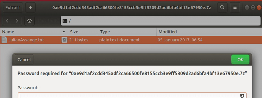 根据Reddit社区 r/bitcoin 上的一篇帖子,发现了一个旧文件,该文件可能与维基解密的告密者和创始人阿桑奇有关。加密的7zip文件位于2017年1月5日发生的交易的输出脚本中,并在区块高度446,713处被开采。 作者还指出,该文件可以通过拼接特定交易的所有输出脚本的pubkhash seg来获得。