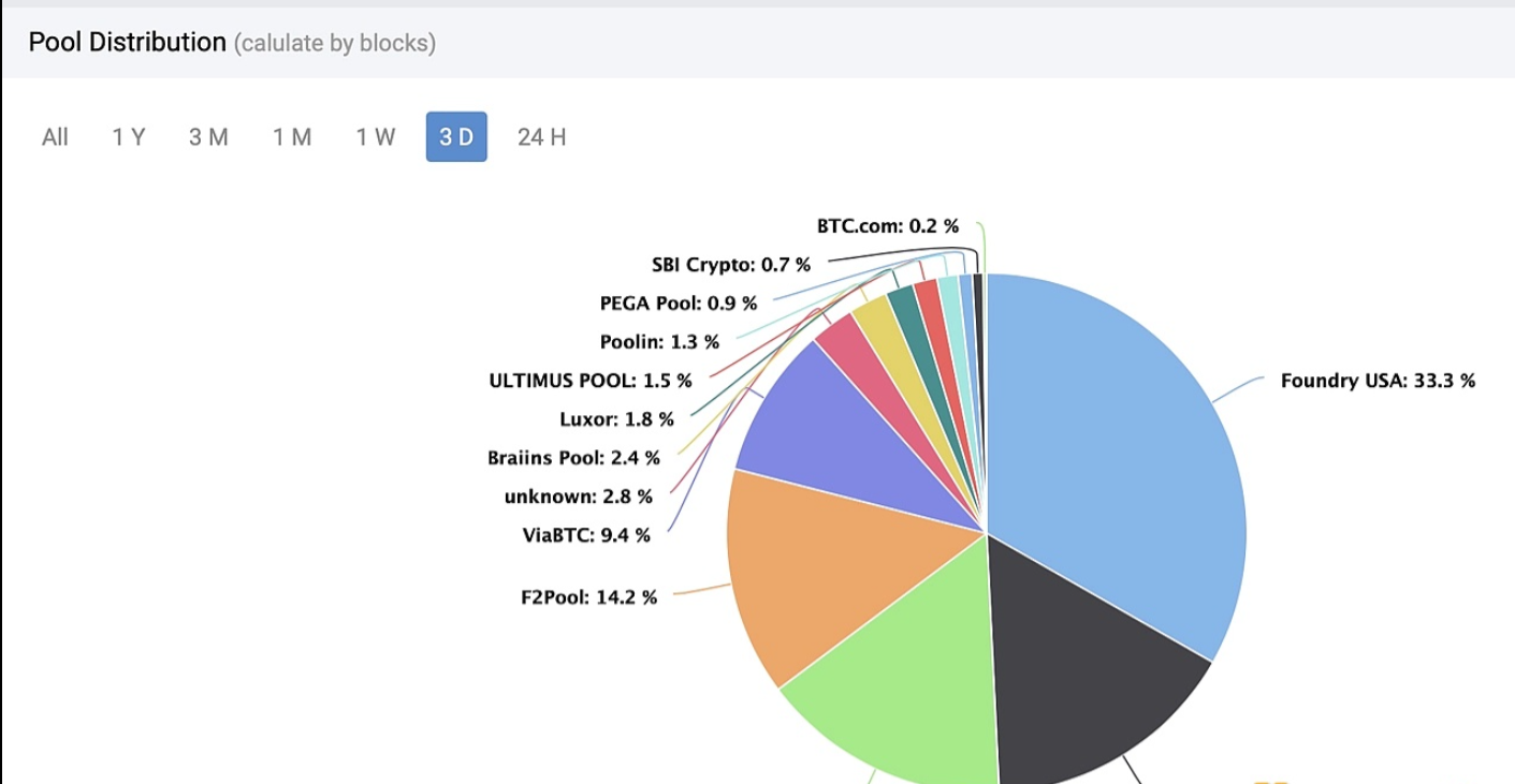 数据显示,在过去的三天里,Foundry USA 一直是最大的矿池,大约95.89 exahash (EH/s) 的哈希算力,拥有全球 33.26% 的比特币网络算力,紧随其后的是拥有 15.97% 全球算力的 Antpool 和拥有 15.54% 算力的 Binance Pool。此外,F2pool (14.22%)和 Viabtc (9.41%)分别位列第四和第五问,目前已知的矿池大约有 12 个,前五大矿池已控制了全球 88.4% 的比特币算力。另据 macromicro.me根据剑桥大学提供的用电量和每日比特币发行量数据计算其估算值统计,比特币 ( BTC )的生产成本仍高于其当前的现货市场价值,目前开采单个比特币的平均成本约为 24,119 美元,而其现货市场价值约为每单位 21,901 美元。
