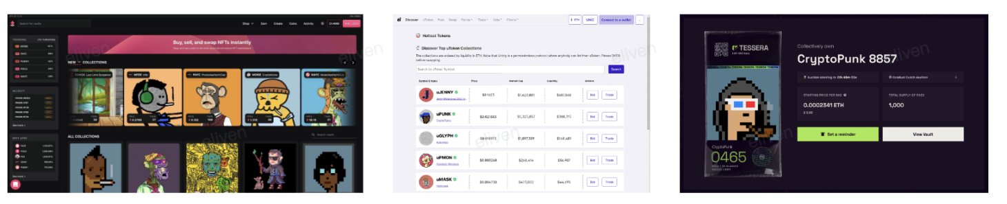 今年这些碎片化协议也在功能上进行了升级,NFTX 推出 Goerli 使用 Uniswap V3 在 NFTX 上创建集中的流动性头寸,Tessera 的游戏 NFT 聚合服务。