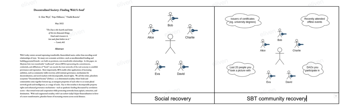 在今年 5 月,一篇名为《去中心化社会:寻找 Web3 的灵魂》(Decentralized Society: Finding Web3’s Soul )的论文发表,作者是微软首席技术官办公室的研究员 Glen Weyl 与 Flashbots 的策略师 Puja Ahluwalia Ohlhaver 以及以太坊的联合创始人 Vitalik Buterin。