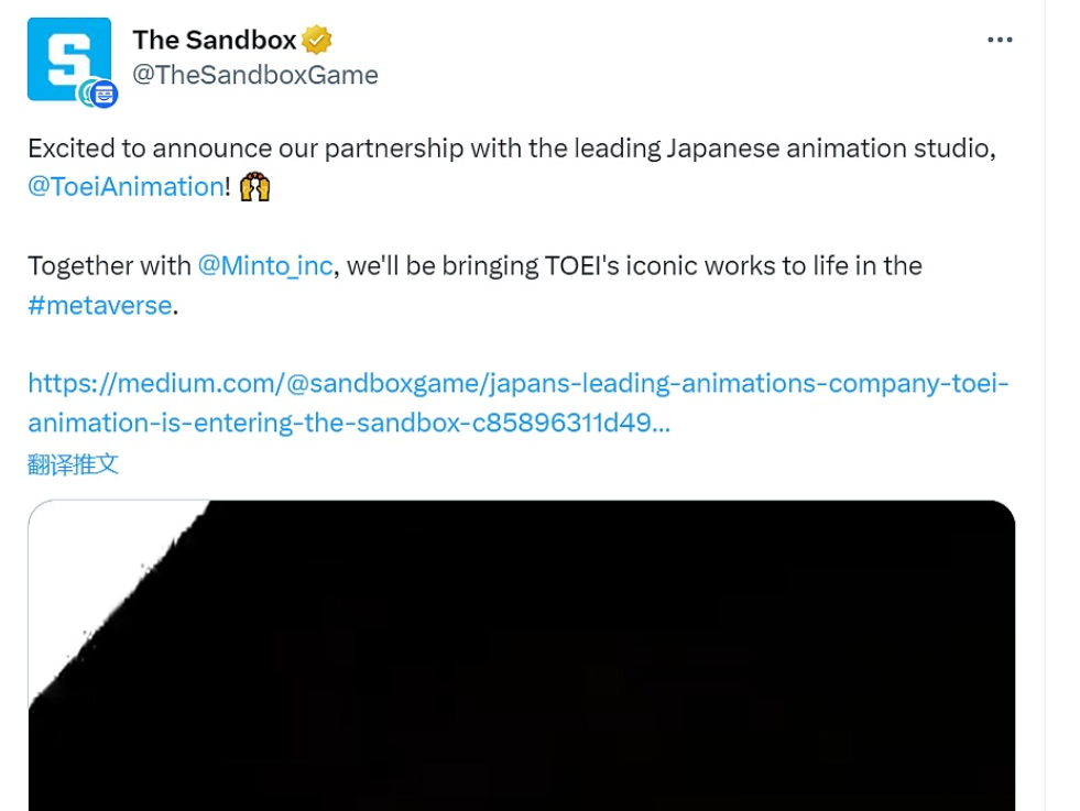 据官方推特,The Sandbox宣布与日本最大、历史最悠久的动画制作公司之一东映动画公司(TOEI ANIMATION CO., LTD.)、以及NFT漫画平台Minto达成合作。 The Sandbox将把东映动画公司的标志性动画角色IP带入元宇宙并推出独家NFT,东映动画旗下动漫作品包括《北斗神拳》、《龙珠》、《灌篮高手》、《海贼王》等。