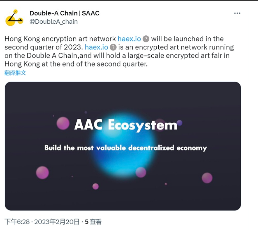 香港加密艺术网haex.io将在2023年第二季度上线。haex.io是运行在Double A Chain(AAC)公链的加密艺术网,并将于第二季度末在香港举办大型加密艺术博览会。在香港政府对加密行业友好的环境下,haex.io的上线将进一步提升香港作为全球艺术和金融中心地位。据悉,Acute Angle Foundation确认对haex.io投资100W美金,且即将获得香港的加密相关的合规牌照。