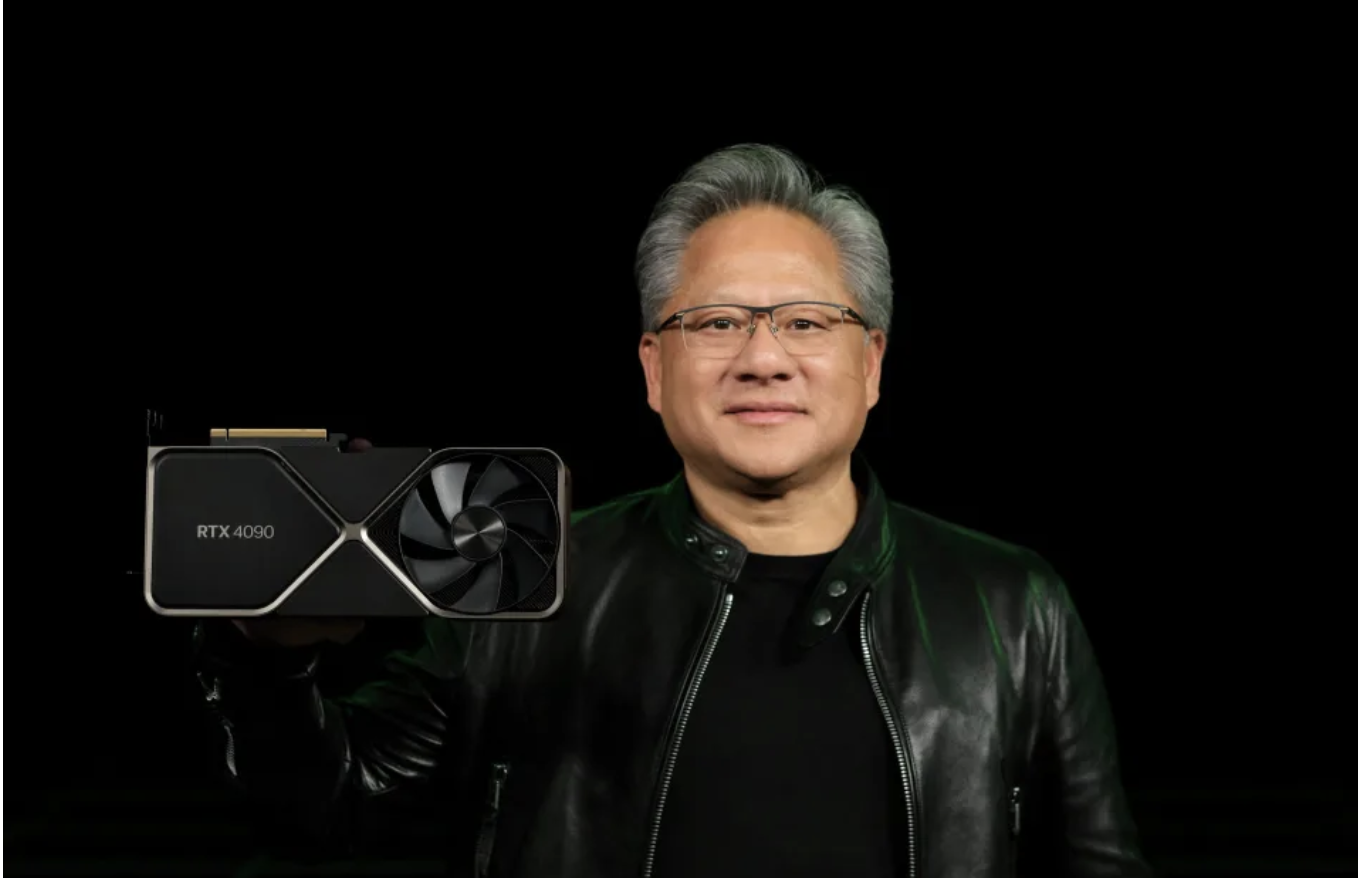英伟达CEO黄仁勋手持该公司用于计算机游戏的新型RTX 4090芯片之一。