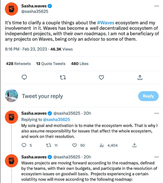 2月24日消息,公链项目Waves、Vires Finance创始人Sasha Ivanov在推特上表示,是时候澄清一些关于Waves生态系统和我参与其中的事情了。Waves已经成为一个由独立项目组成的去中心化生态系统,有自己的路线图。我不是Waves上任何项目的受益者,只是其中一些项目的顾问。我唯一的目标和动机是让生态系统运转起来。这就是为什么我也对影响整个生态系统的问题负责,并致力于解决这些问题。 此外,Ivanov宣布,Waves.exchange通过WX.network域上的新去中心化桥有效地重新启动(已于去年10月宣布)。目前的网关将在可预见的未来继续运行,它们的流动性问题将在大约一个月内得到解决。将推出新版本的借贷协议,支持新的桥梁,以及其他重大改进。Vires持有者将像以前一样获得协议利润。新版预计到三月中旬左右。