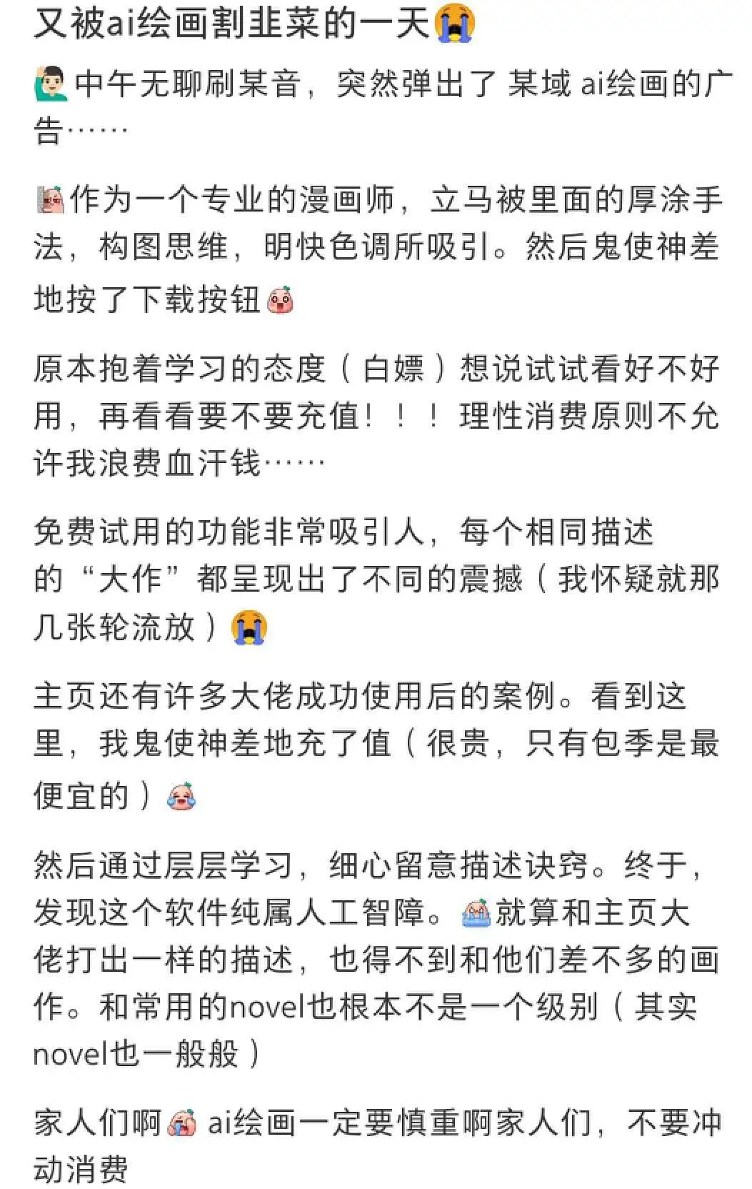 有网友表示被“AI绘画”课程割了韭菜 图源 / 小红书