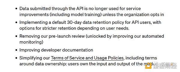 划重点!除非客户明确同意,否则它将不再使用通过API提交的数据来训练模型。