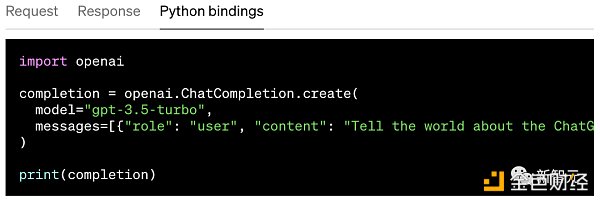 ChatGPT API回应示例: